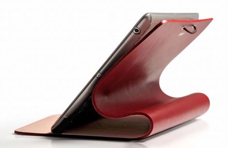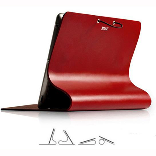 革の曲線をうまく利用して、複数通りのスタンドスタイルでiPad 本体の角度調整を行うことができます。