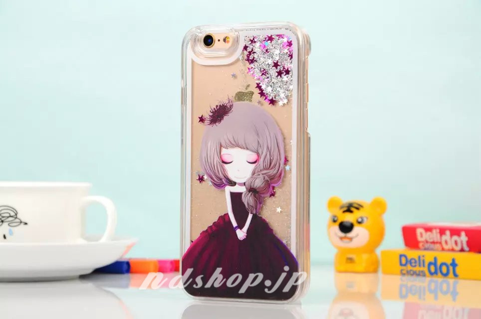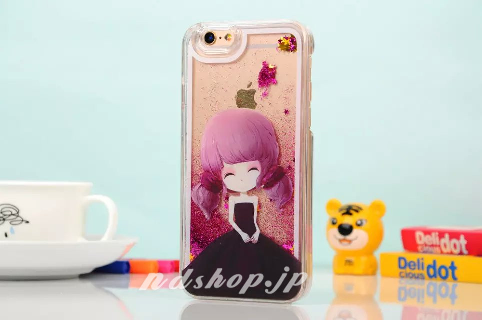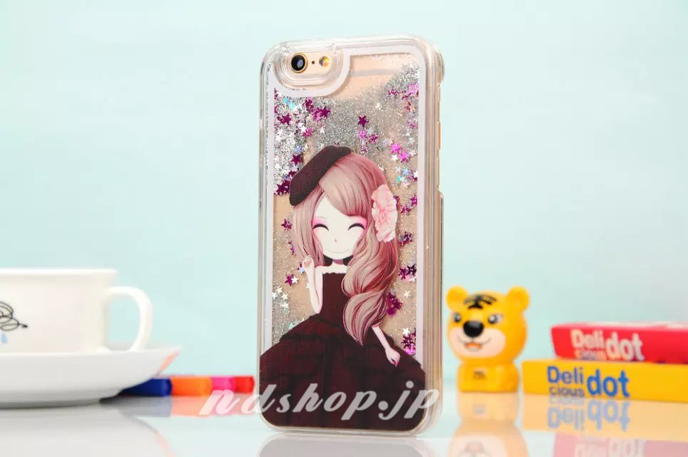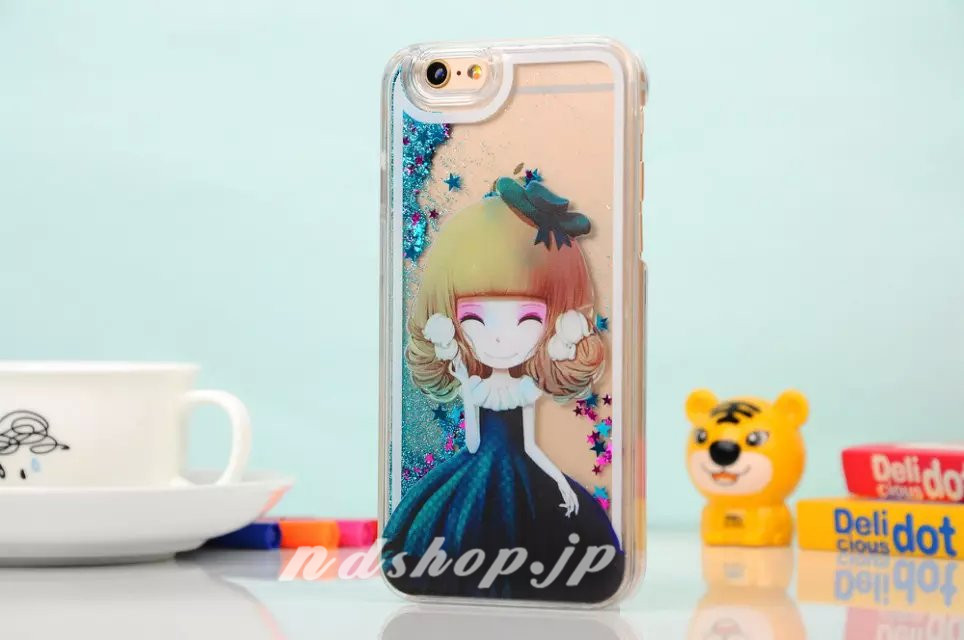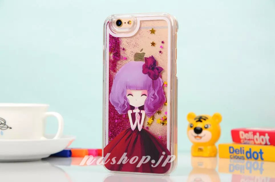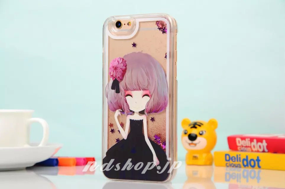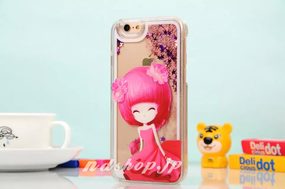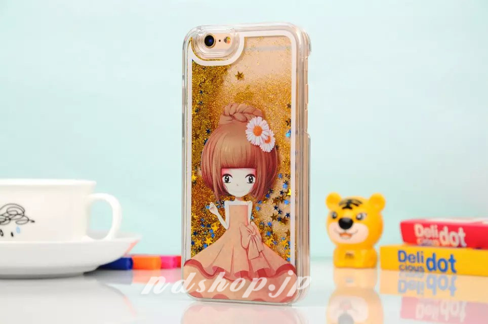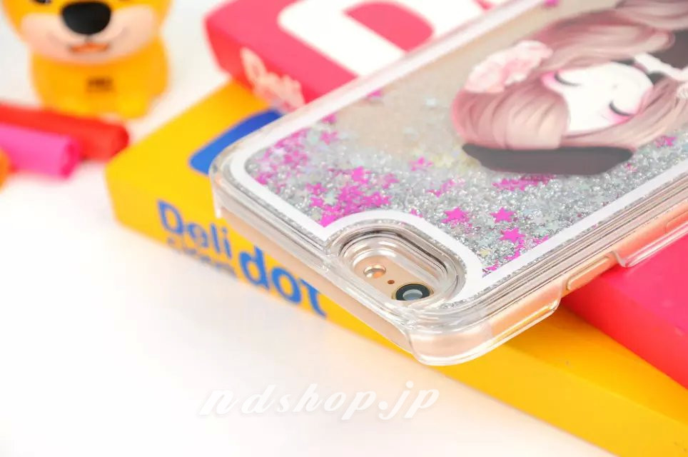 きらきらの流砂と星がケースに入って、傾けたりすることでゆっくりと流れて動く、とても面白い、カラフルなガールが立体感がある、キラキラの流砂と星での相性が抜群です、遊び心満載のケース。