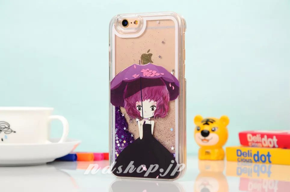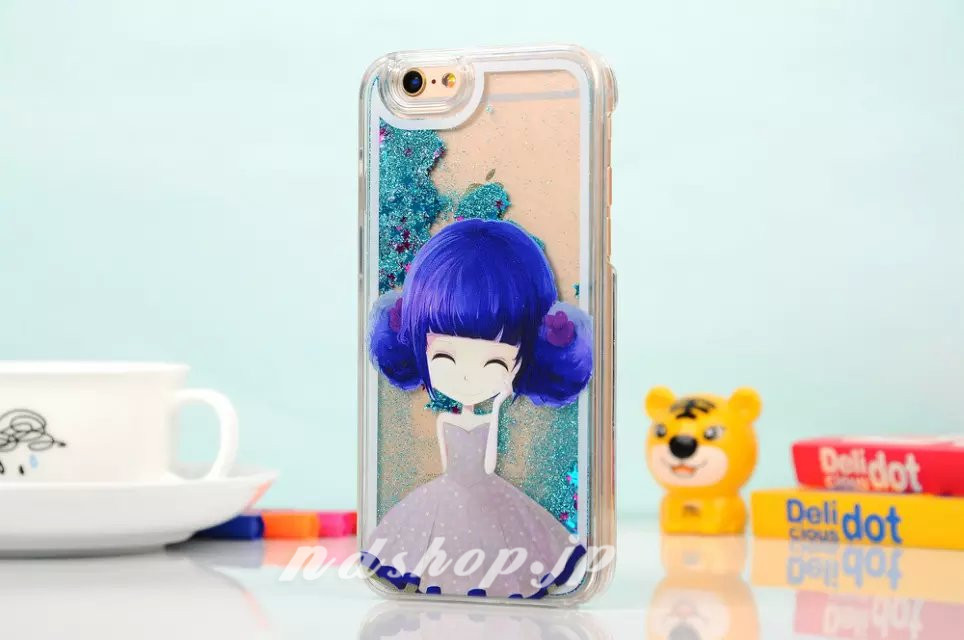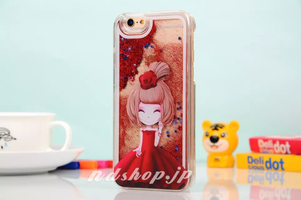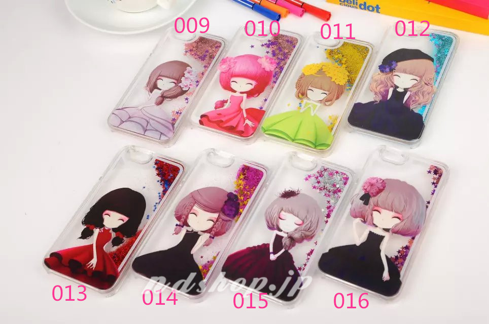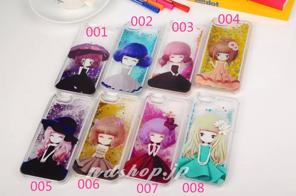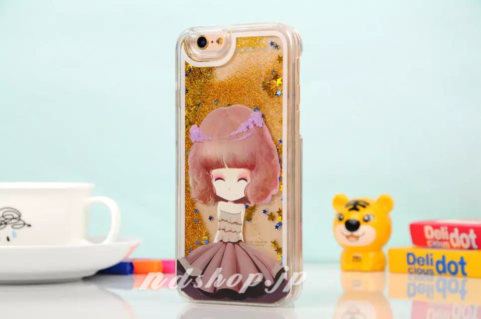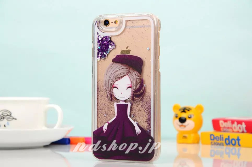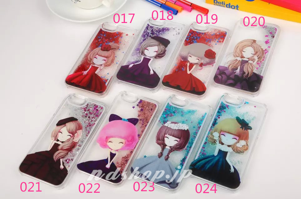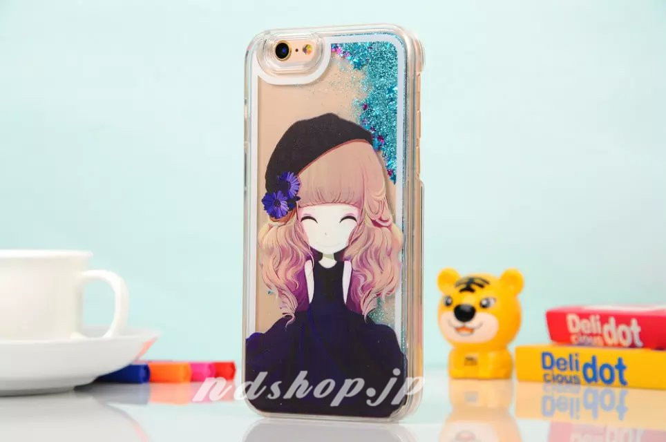 きらきらの流砂と星がケースに入って、傾けたりすることでゆっくりと流れて動く、とても面白い、カラフルなガールが立体感がある、キラキラの流砂と星での相性が抜群です、遊び心満載のケース。