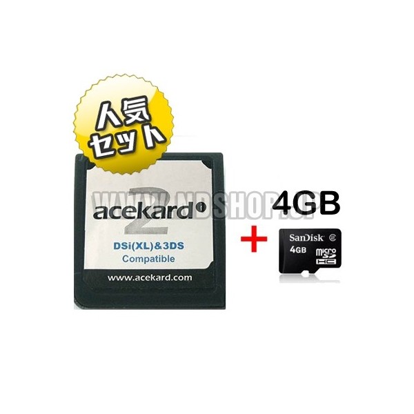 DS/DSL/DSi/DSiLL/3DS/3DSLL対応のAcekard2i正規品& Sandisk 4GBセット