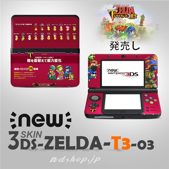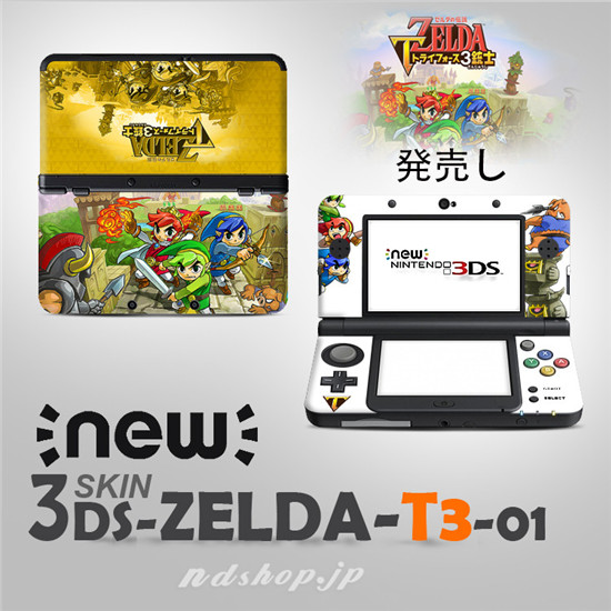 ニンテンドーNEW 3DS/3DSLLににぴったりの「ゼルダの伝説 トライフォース3銃士」シールです、傷や汚れから保護しながらデコレーションします。